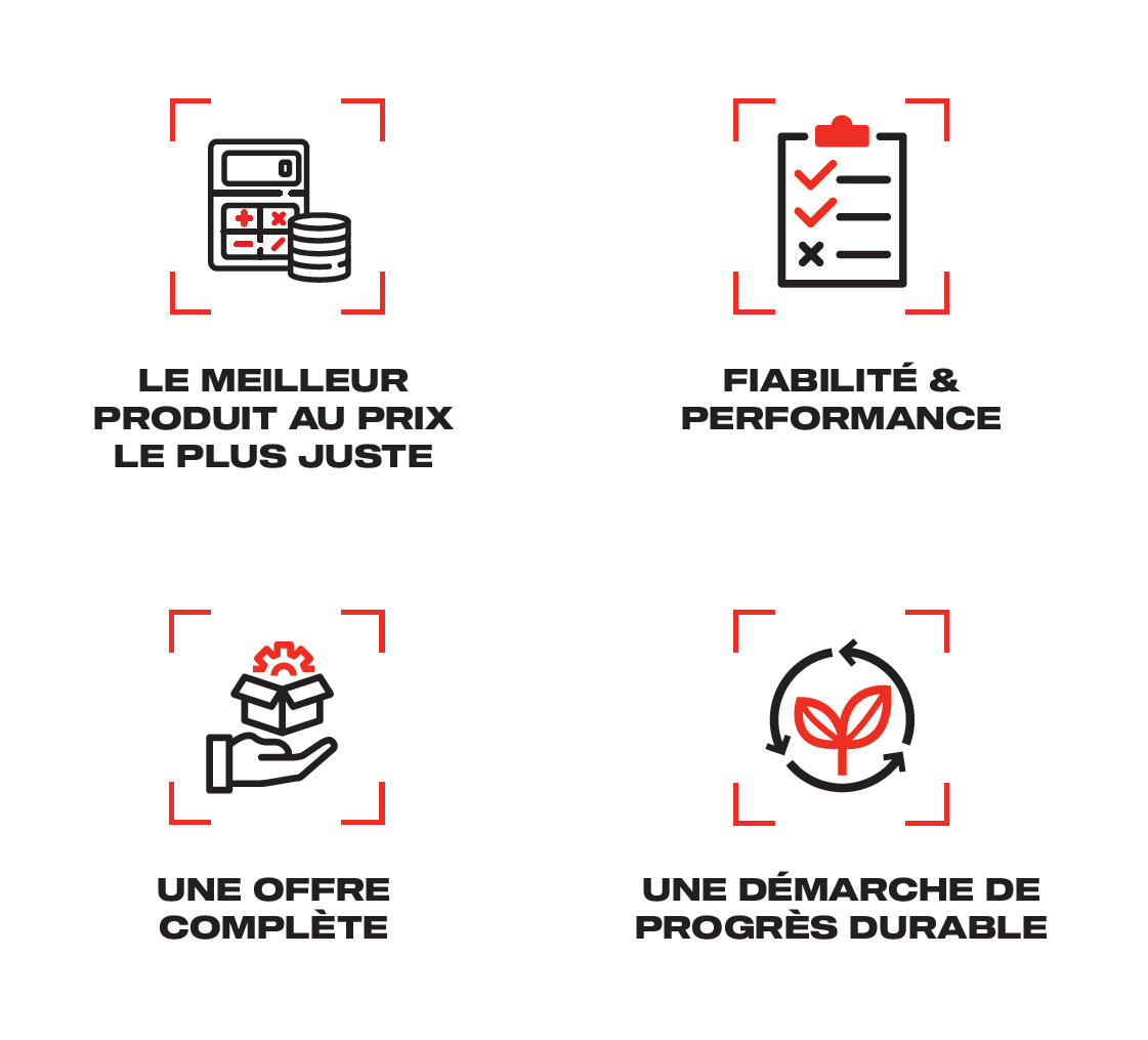 Nous proposons des solutions dont la qualité est toujours alignée avec le prix : la garantie d’un produit performant, utile et parfaitement positionné pour répondre aux besoins des professionnels.